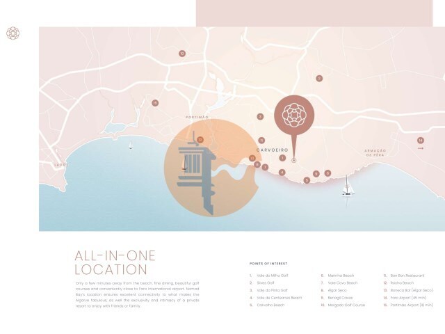 Com apenas 74 apartamentos (T1 a T3), todos com janelas panorâmicas do chão ao teto, o empreendimento privilegia a luminosidade natural e o contacto com a natureza, numa arquitetura que alia conforto, funcionalidade e elegância.