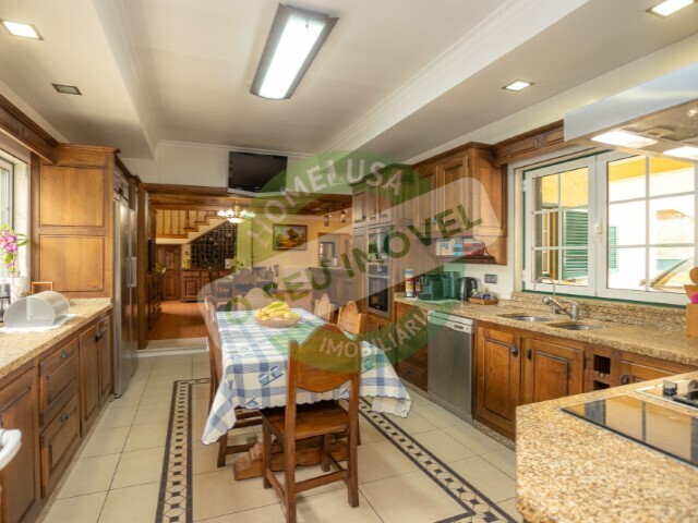 A moradia é composta por cinco quartos, sendo um deles suite, cozinha completamente equipada, sala de estar com recuperador de calor, lavandaria, três Wcs, escritório, anexos e garagem dupla.