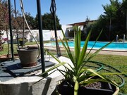 O lote tem 675m2 com um agradável quintal com piscina (garantia de 9 anos), poço, árvores de fruto, forno a lenha, churrasqueira e telheiro para viaturas.