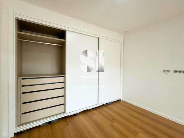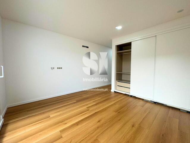 Os quartos possuem roupeiros embutidos e pavimento flutuante, garantindo conforto térmico e elegância.