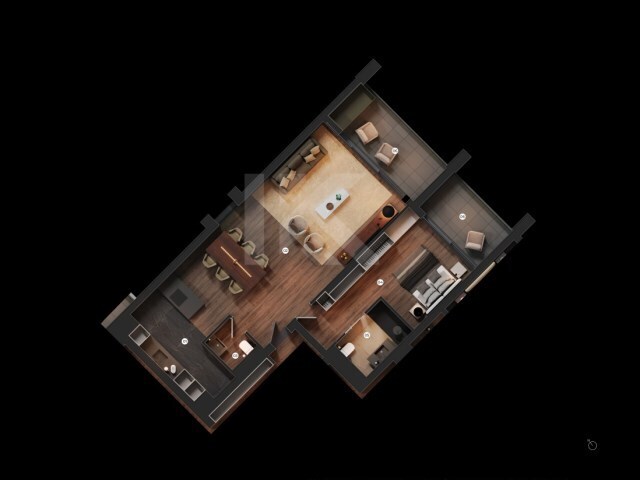 É composto por uma sala de estar e jantar, uma cozinha, uma WC social, uma suite com WC privativa e uma varanda.