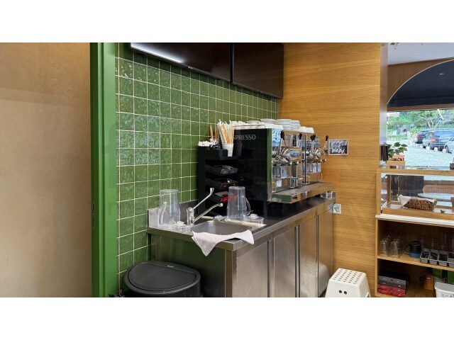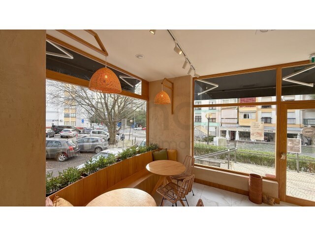 A croissanteria é composta por um espaço de loja com balcão e mesas, esplanada, cozinha, casas de banho e armazém, tudo a funcionar em pleno.