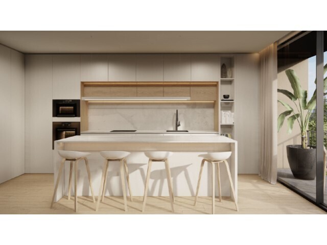 Móveis em MDF Hidrofogo Lacado a Branco, com Ilha e equipada com Despenseiro