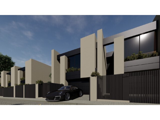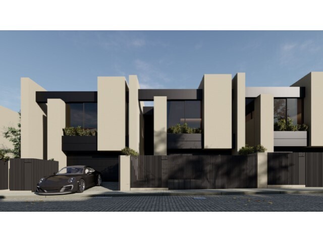 Moradias de arquitetura contemporânea, 2 frentes, compostas por cave, rés-do-chão e andar.