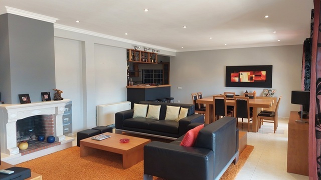 4 quartos , um é suite (closet e wc), roupeiros; 3 casas de banho, grande sala com lareira, bar ; cozinha espaçosa com ilha e completamente equipada ; despensa; garagem e anexo com churrasqueira e forno; logradouro.