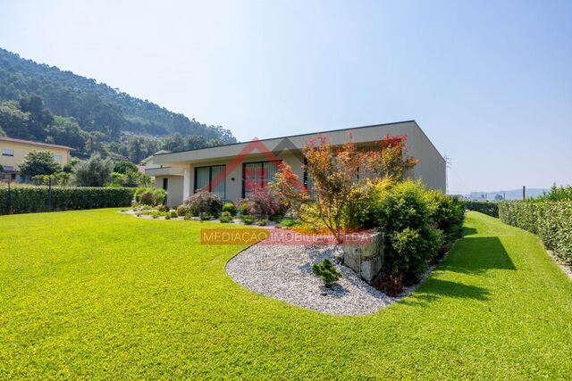 Moradia térrea de arquitetura contemporânea, construída em 2021, inserida num lote de 1.755 m², localizada em S. Miguel do Couto, no concelho de Santo Tirso.