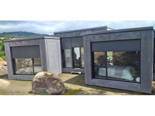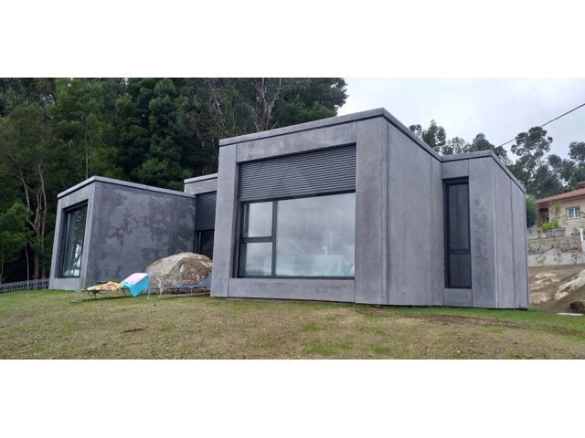 A construção em betão proporciona durabilidade e solidez, enquanto o piso radiante e a bomba de calor garantem um ambiente confortável em todas as estações do ano.